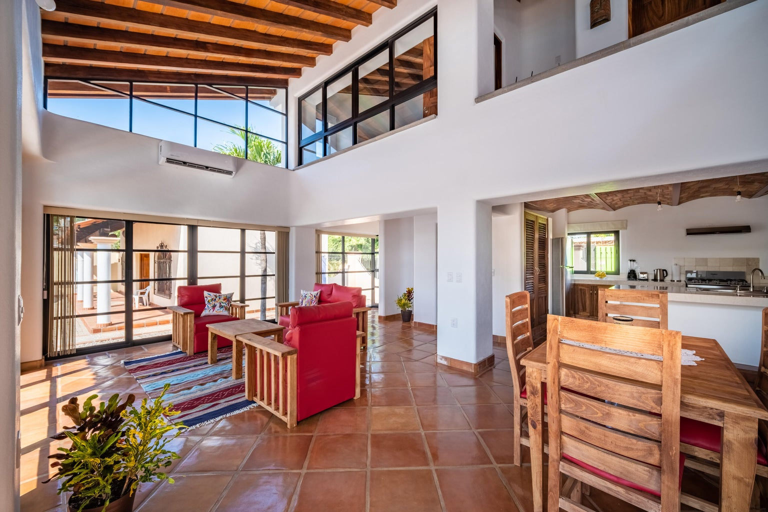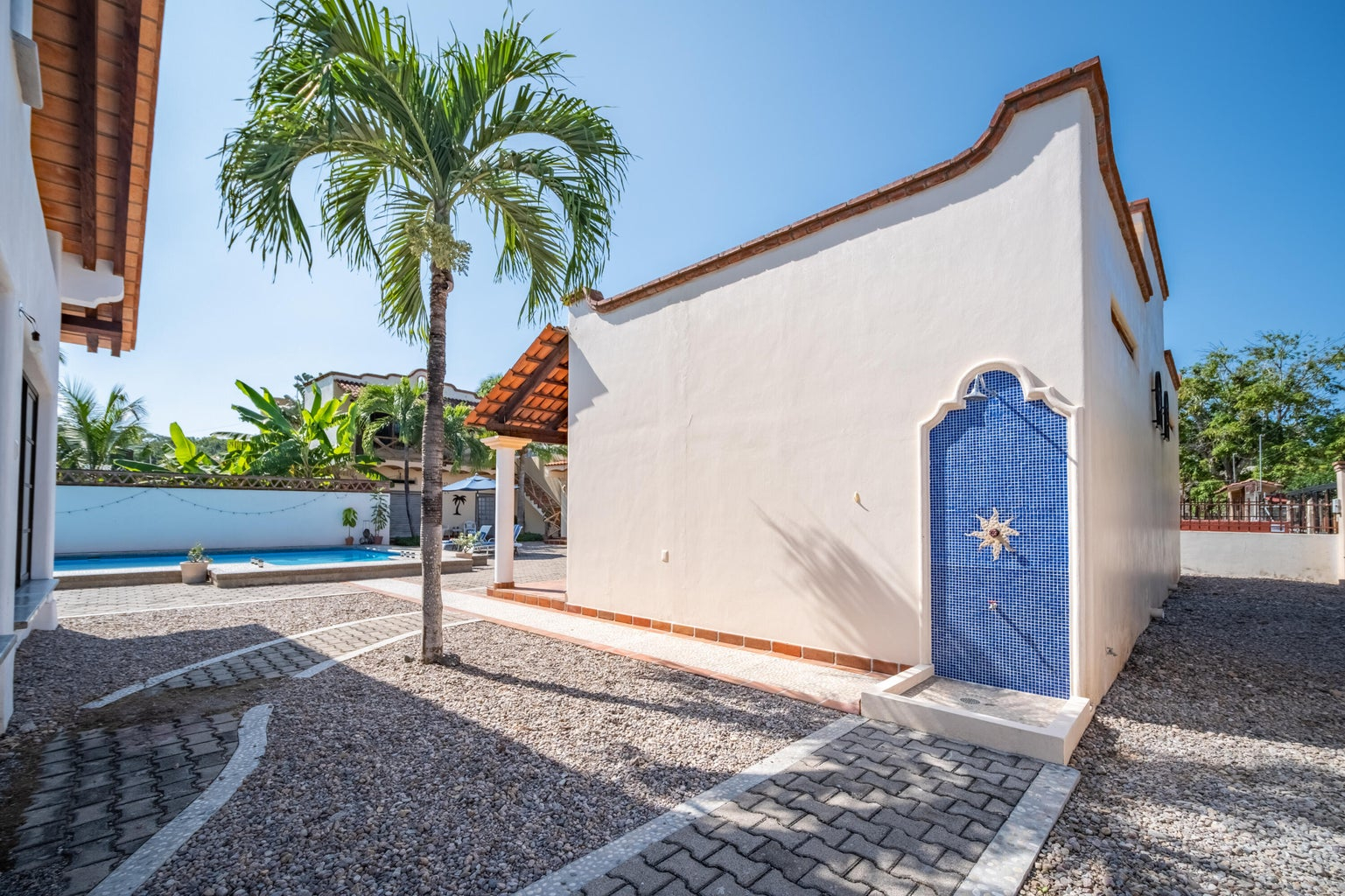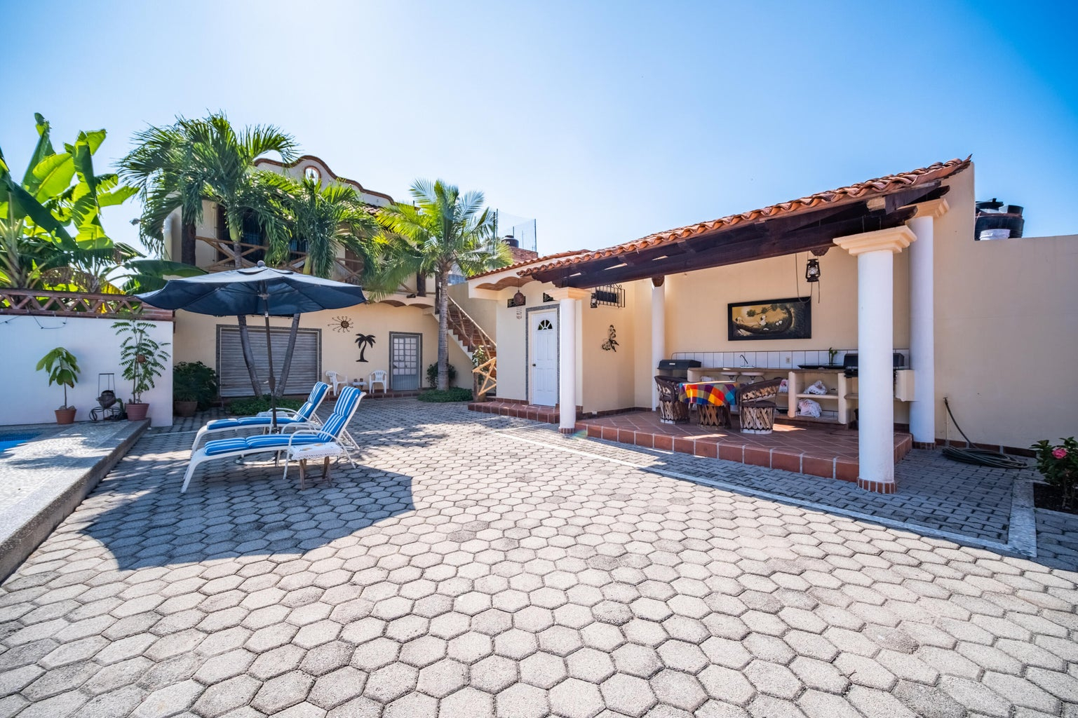 Introducing ”Hacienda Braun” – a stunning property located on Privada Universidad Street, just three blocks from the beach in Lo de Marcos, Nayarit. This home, crafted by local architect Cesar, comprises three separate buildings. The main house boasts 2 bedrooms, 1.5 bathrooms, and a balcony with garden and pool views. Two one-bedroom suites with private bathrooms and kitchens, along with an additional suite above a full-size storage cellar, provide versatile living options. The outdoor haven includes Lo de Marcos’s largest saltwater pool, an 18-meter oasis approaching Olympic dimensions, complemented by a patio and an outdoor kitchen area with a barbecue. Priced at $895,000.00 USD, this 697 m2 property offers a harmonious blend of luxury and coastal living.