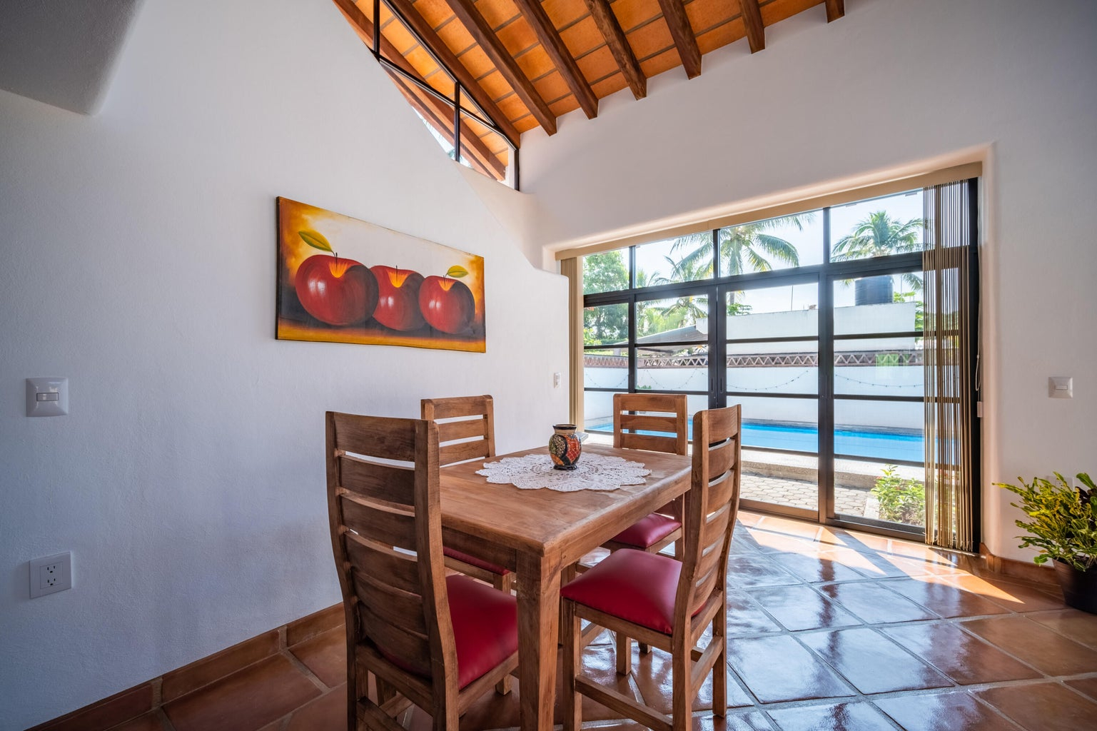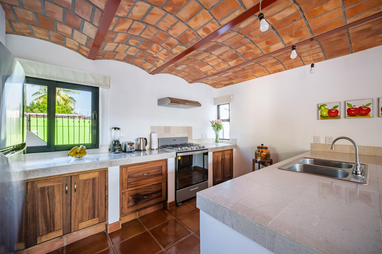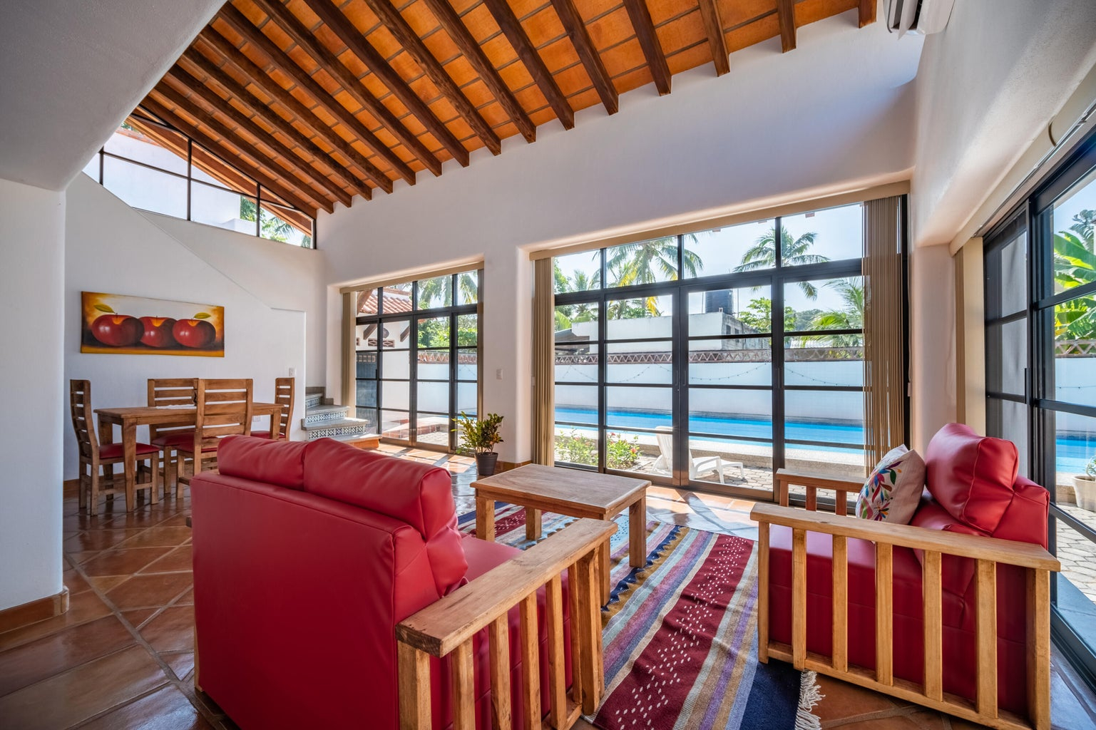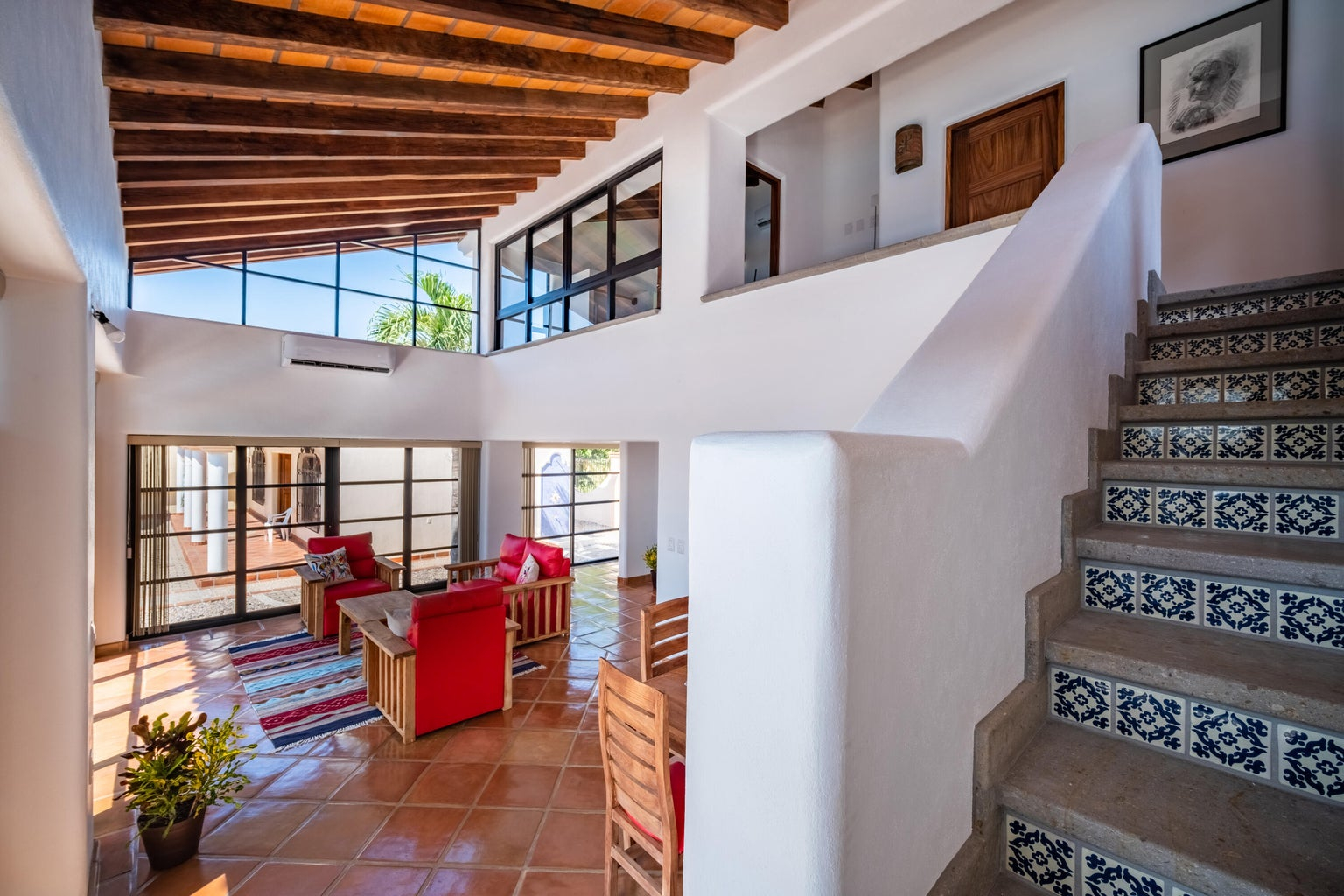 Introducing ”Hacienda Braun” – a stunning property located on Privada Universidad Street, just three blocks from the beach in Lo de Marcos, Nayarit. This home, crafted by local architect Cesar, comprises three separate buildings. The main house boasts 2 bedrooms, 1.5 bathrooms, and a balcony with garden and pool views. Two one-bedroom suites with private bathrooms and kitchens, along with an additional suite above a full-size storage cellar, provide versatile living options. The outdoor haven includes Lo de Marcos’s largest saltwater pool, an 18-meter oasis approaching Olympic dimensions, complemented by a patio and an outdoor kitchen area with a barbecue. Priced at $895,000.00 USD, this 697 m2 property offers a harmonious blend of luxury and coastal living.